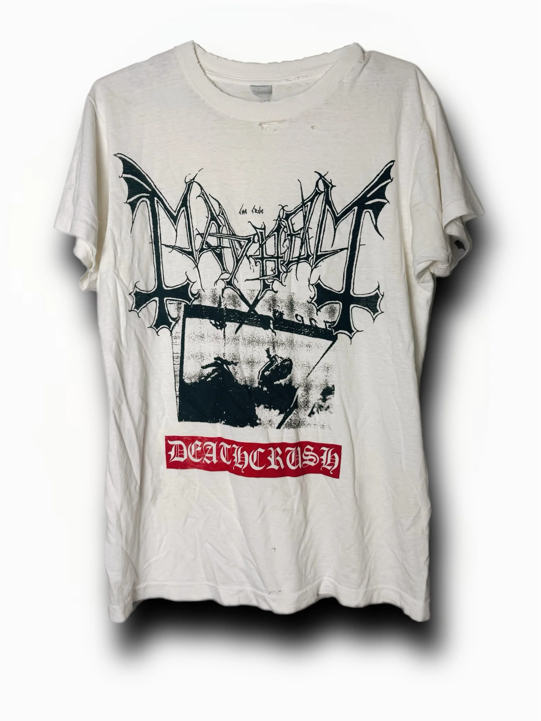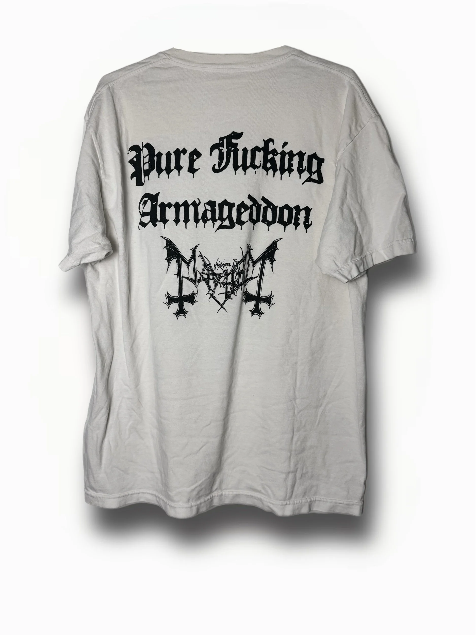 Image 1 of 2 Image 2 of 2 Mayhem T-shirt $40.00 First 30 orders will be vintage shirts, after will be heavy duty 100% cotton 6.5 oz blanks Size: Small Medium Large XXL XXXL XL Add To Cart Added! First 30 orders will be vintage shirts, after will be heavy duty 100% cotton 6.5 oz blanks